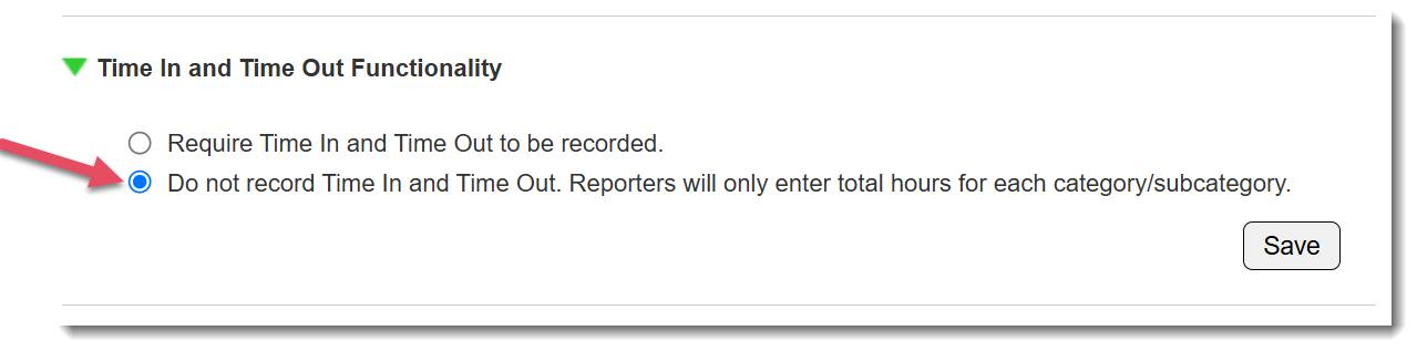 Note: This will update all future timesheets beginning at the next launch. Current timesheets will continue to have time in and time out functionality.