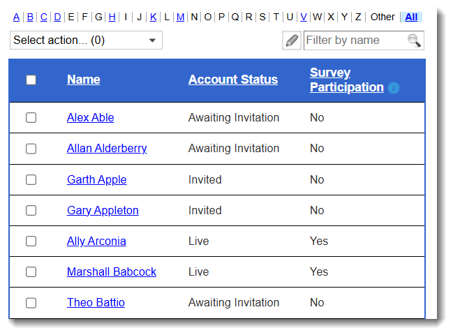 To reset the view to display all volunteers, select the “All” link to the right of the letters.