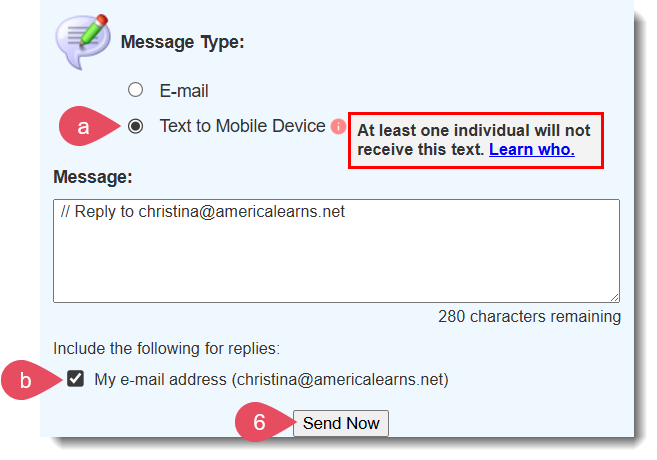 - When sending e-mail messages, keep the following in mind:  - Messages will be sent from replytosender@americalearns.net.