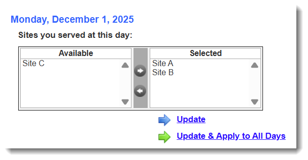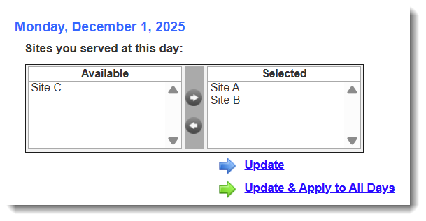 There may be times when your reporters will need to show that they served at more than one site on a given day. Here are a couple of scenarios to help you explain the best way to handle this.