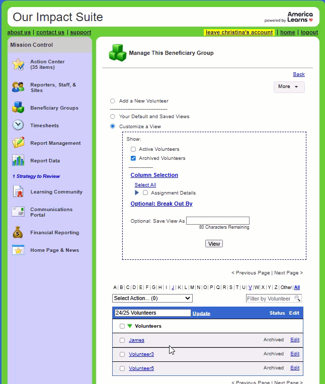 Example: You want to archive all of the students connected to a specific reporter. Use the Customize a View feature to reveal the Reporter Assignment (found in the Assignment Details panel).