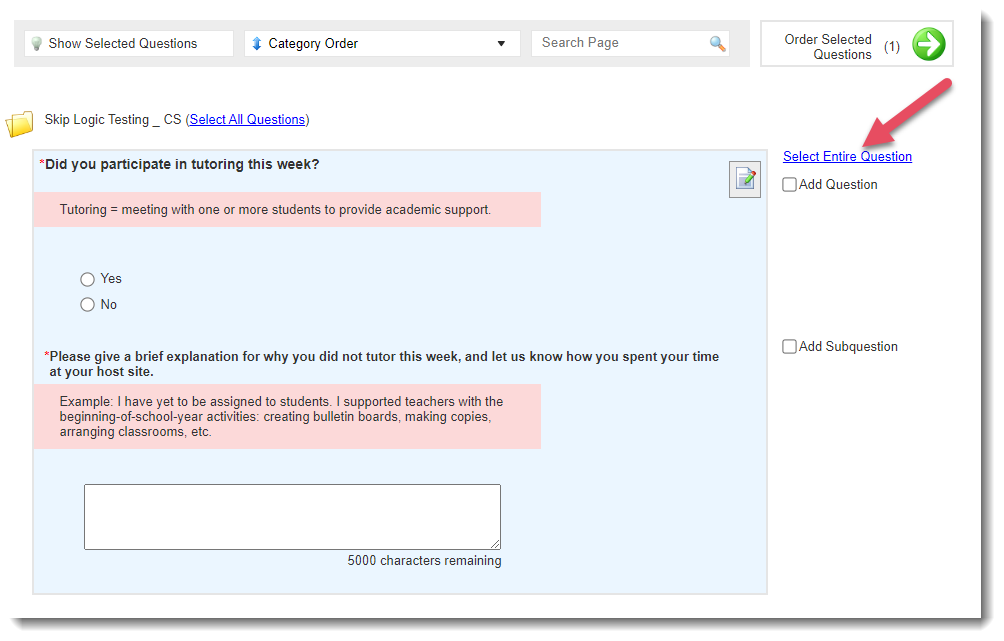 For a question with subquestions, you can use this option to select the entire question (including all subquestions):