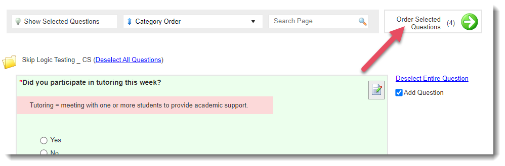 - Once you’ve selected your questions, click Order Selected Questions at the top or bottom of the page.