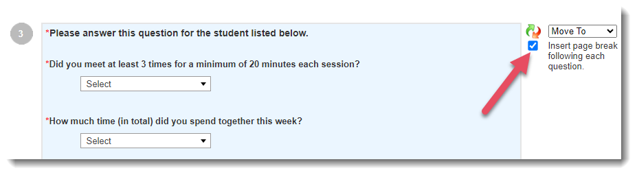 Adding Page Breaks for Group Questions
