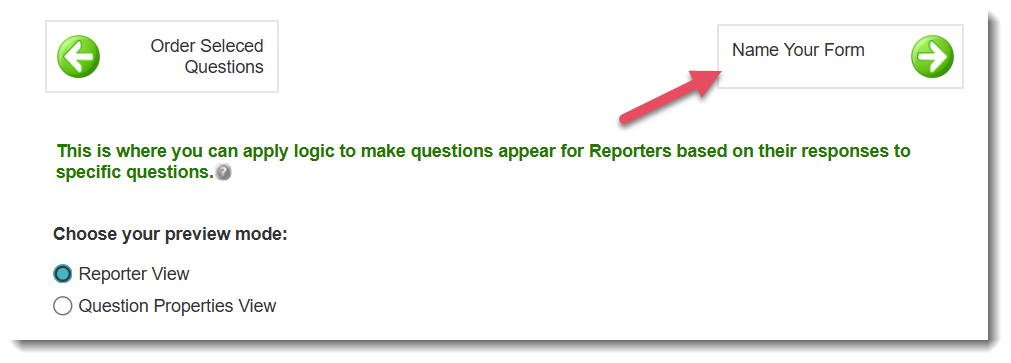 Want to learn more about using display logic in your forms? Check out this detailed article on Display Logic here. - Once you are happy with the applied display logic (optional), click the Name Your Form button at the top or bottom of the page.