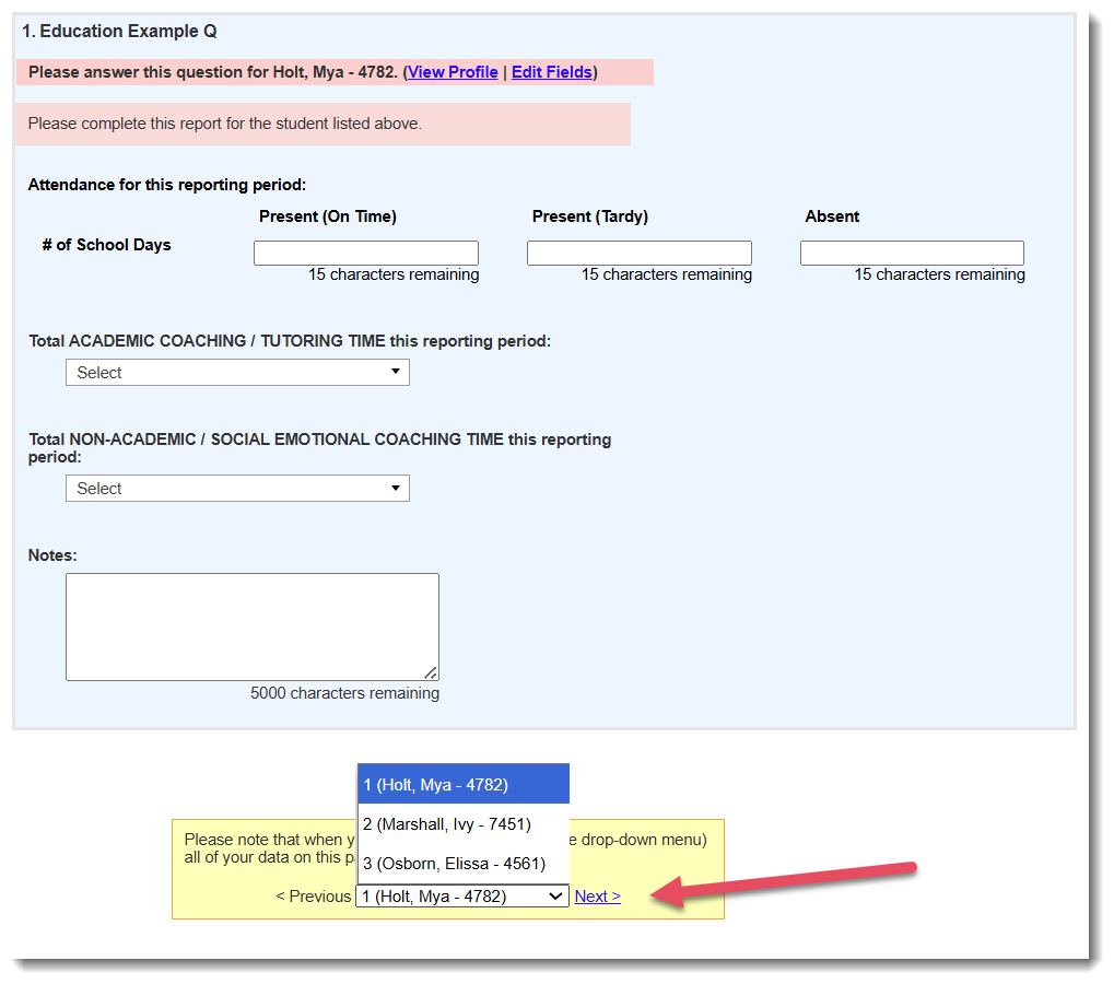 You should use page breaks if your reporters are connected to more than one identifier. This will ensure that it is easy for your reporters to find and update the question for each identifier and will also automatically save data as reporters move from one page to the next. (This will prevent data-loss if your reporter’s internet connection is poor.)