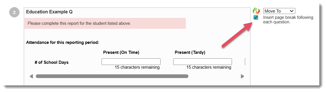 If you have included any group questions on your form you will have the option to add page breaks for that question for each identifier to which your reporter is associated.
