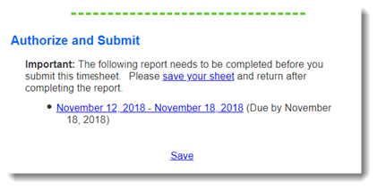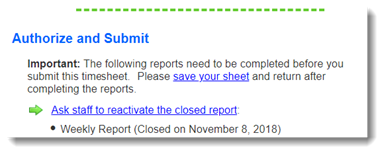 When reporters attempt to submit timesheets that are linked to closed reports, they will see a message like this one: