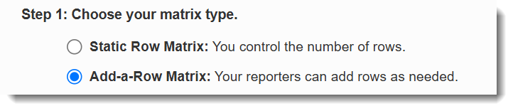 - In Step 1, you'll see the question's matrix type. (This cannot be edited.)