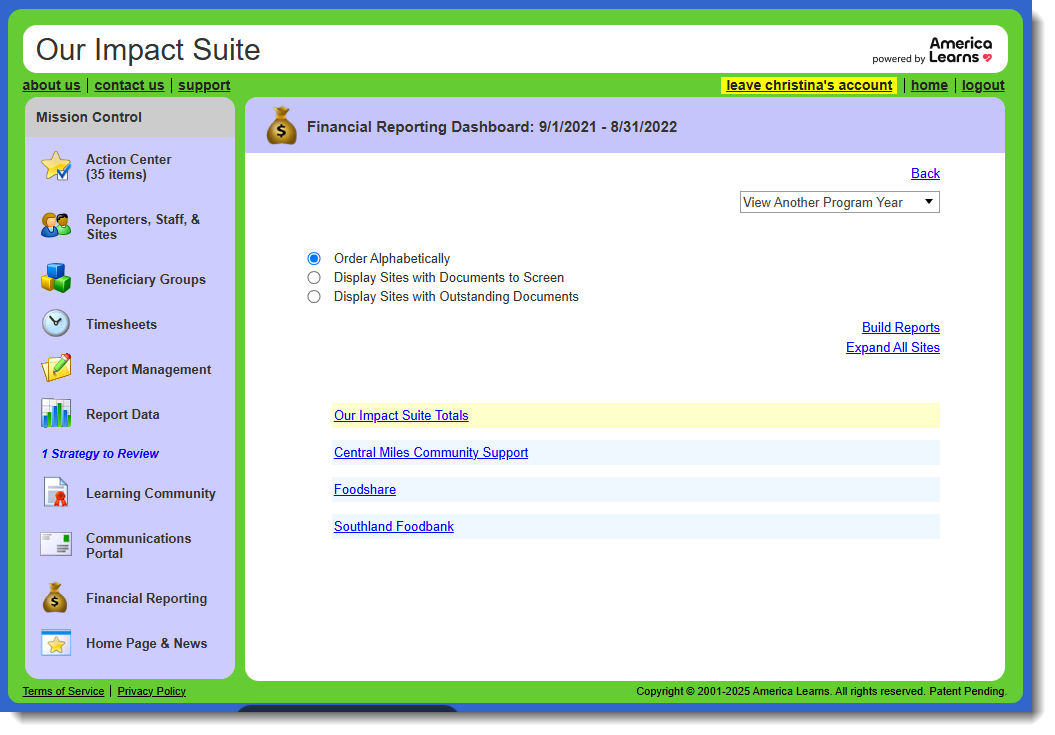 Follow these steps to access and review programs’ financial reports awaiting your review from your Action Center:
