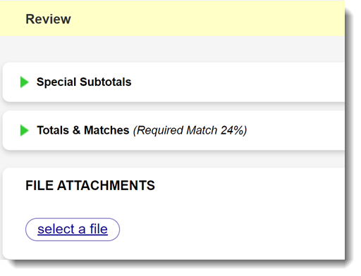 8. Hacia la parte inferior del formulario, verá una sección llamada REVIEW. Esta es la parte más importante del proceso de envío, ya que le indicará lo que necesita hacer para reconciliar el presupuesto para una presentación precisa.