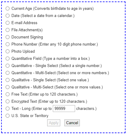 A custom field is any data point that must be collected from your Reporter. This could be: Start Date, End Date, DOB, Demographic Information, Background Check and Onboarding Documents.
