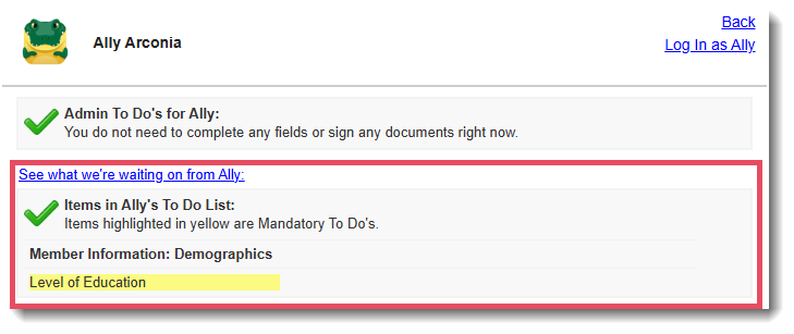 - In relevant reporter profiles, a new section called Admin To Do's will appear: