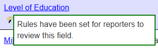 - Now decide how this field should be treated upon enrollment and when revisiting individual reporter profiles: