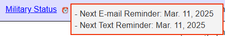 To turn on E-mail Alerts and/or Text Message Alert, click Use. Then, set the first reminder date and final reminder date. If no final date is selected reminders will be sent until the field has data.
