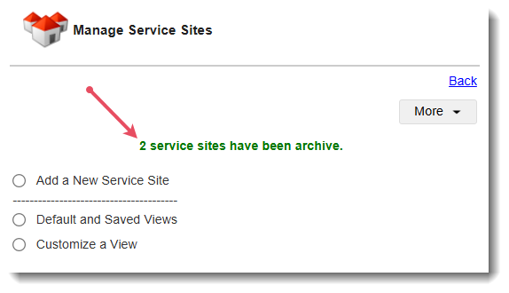 The number next to the action confirms the total number of service sites that you have selected. - Once archived, you'll see a confirmation at the top of the page, like this: