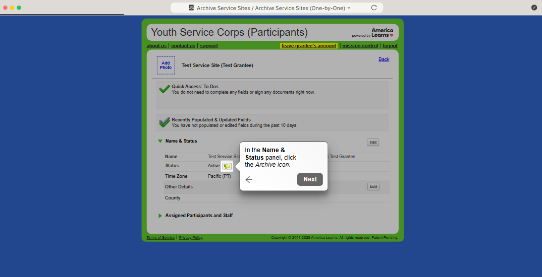When a service site no longer hosts participants, it's time to archive it. Here are the steps for archiving service sites one-by-one: