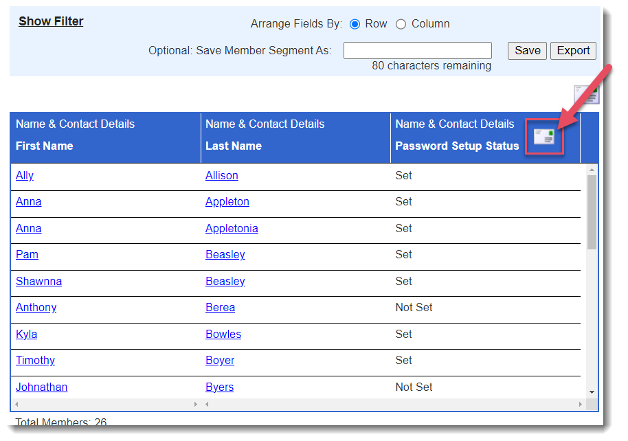 After you send the Welcome/Password Setup Email to your Participants, you can now easily track which Participants have and have not setup up their passwords and even target folks based on any number of custom fields.