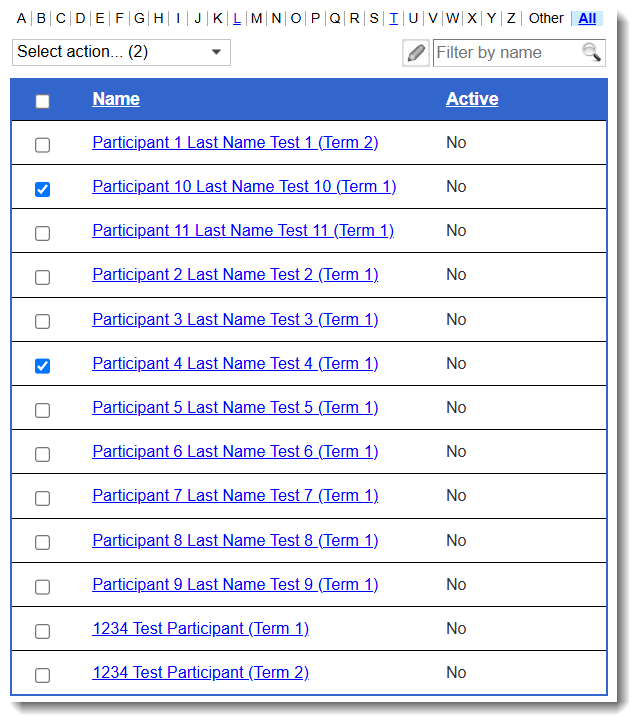 - Organize the roster by Participant name and select all. (You might want to deselect any test participants you've created.)