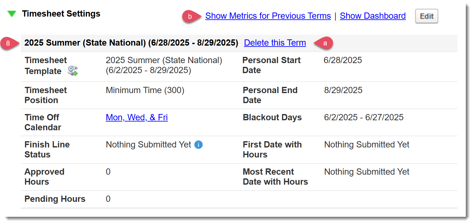 IMPORTANT: After deleting a term, you may need to re-adjust the Personal End Date and Blackout Days to reflect the Reporter's true end date and blackout days for their prior term.