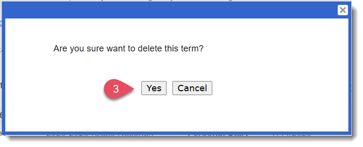 Select Yes in response to the pop-up question, "Are you sure you want to delete this term?"