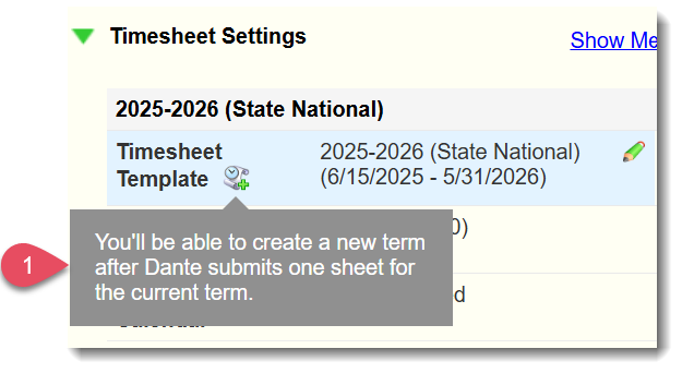 - Timesheet Submission: At least one timesheet must be submitted on the current term before a new one can be created.
