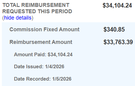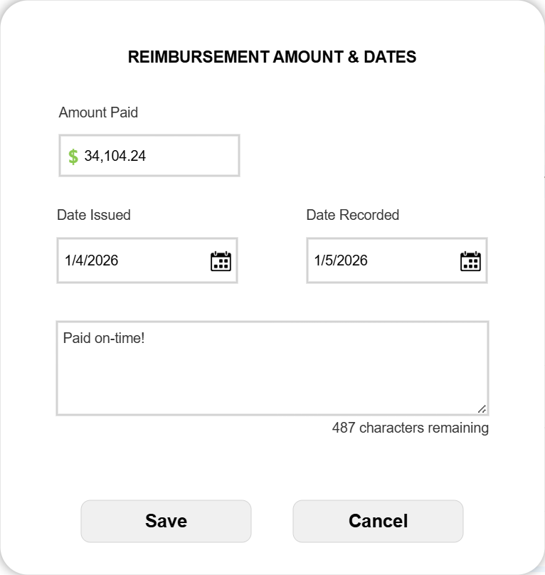 - A green icon shows that both reimbursement issurance and recording dates have been entered.